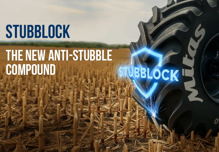 Mitas STUBBLOCK is the new advanced rubber compound engineered to increase tire durability and resist damage from sharp crop stubble.